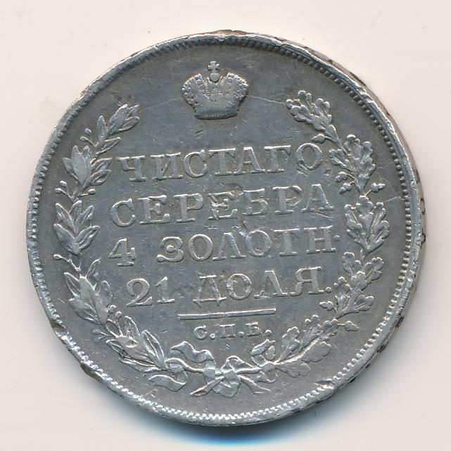 Выделяют три типа орла. Лицевая сторона - двуглавый орел, дата и надпись «МОНЕТА РУБЛЬ», оборотная — окруженная венком из лавровой и дубовой ветвей надпись «ЧИСТАГО СЕРЕБРА 4 ЗОЛОТН 21 ДОЛЯ». Проба — 868, нормативный вес — 20,73 грамма.