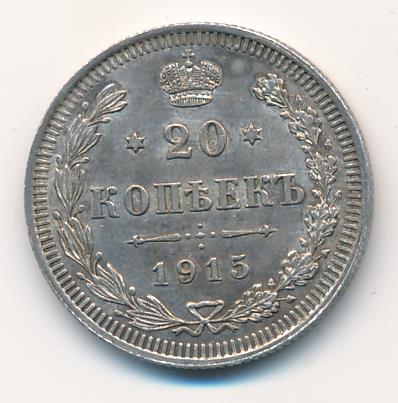Лицевая сторона — гербовый орел, оборотная —обозначение номинала (20 копеекъ), окруженное венком из лавровой и дубовой ветвей и дата.