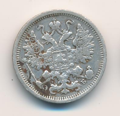 Лицевая сторона — гербовый орел, оборотная —обозначение номинала (15 копеекъ), окруженное венком из лавровой и дубовой ветвей и дата.