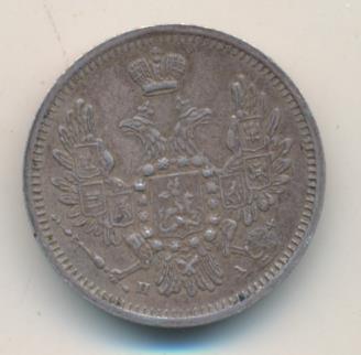 Лицевая сторона — новый гербовый орел с поднятыми крыльями, оборотная —обозначение номинала (10 копеекъ), окруженное венком из лавровой и дубовой ветвей и дата. Проба — 868, нормативный вес — 2,07 грамма.