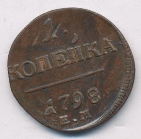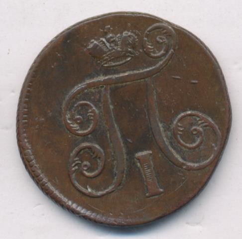 Лицевая сторона — вензель Павла I под короной, оборотная — номинал (1 копейка) и дата. Нормативный вес — 10,24 грамма, гурт — шнур.