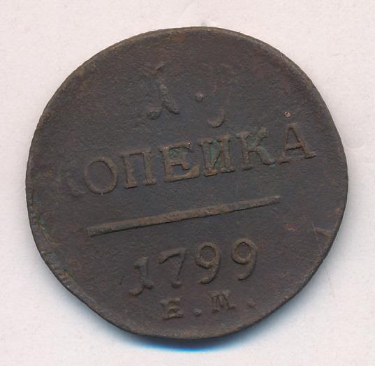 Лицевая сторона — вензель Павла I под короной, оборотная — номинал (1 копейка) и дата. Нормативный вес — 10,24 грамма, гурт — шнур.