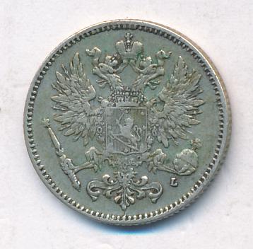 Лицевая сторона — российский двуглавый орел с гербом Великого княжества Финляндского на груди, оборотная — номинал и дата в венке из дубовых листьев. Проба — 750, нормативный вес — 2,55 грамма, гурт рубчатый.