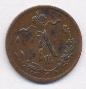 Лицевая сторона — вензель Александра II в венке из лавровой и дубовой ветвей; оборотная — обозначение номинала (1/2 копейки) и дата. Нормативный вес — 1,64 грамма, гурт рубчатый.