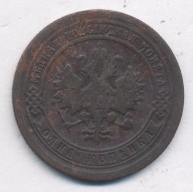 Лицевая сторона — двуглавый орел, надпись МЕДНАЯ РОССIЙСКАЯ МОНЕТА и обозначение номинала (одна копейка); оборотная — обозначение номинала (1 копейка) в бусовом ободке и дата. Нормативный вес — 3,28 грамма, гурт рубчатый.