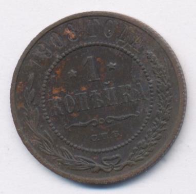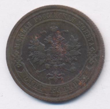 Лицевая сторона — двуглавый орел, надпись МЕДНАЯ РОССIЙСКАЯ МОНЕТА и обозначение номинала (одна копейка); оборотная — обозначение номинала (1 копейка) в бусовом ободке и дата. Нормативный вес — 3,28 грамма, гурт рубчатый.