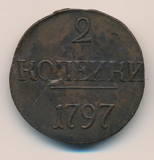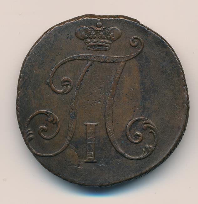 Лицевая сторона — вензель Павла I под короной, оборотная — номинал (2 копейки) и дата. Нормативный вес — 20,48 грамма, гурт — шнур.