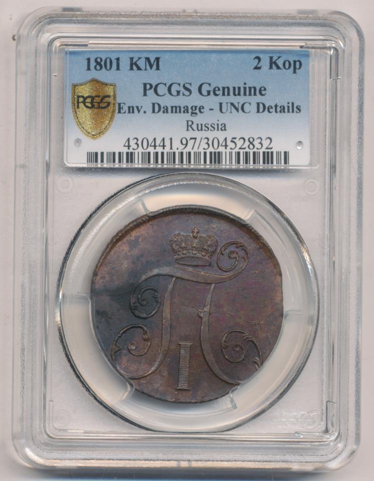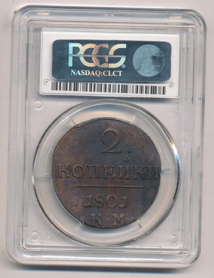 Лицевая сторона — вензель Павла I под короной, оборотная — номинал (2 копейки) и дата. Нормативный вес — 20,48 грамма, гурт — шнур.