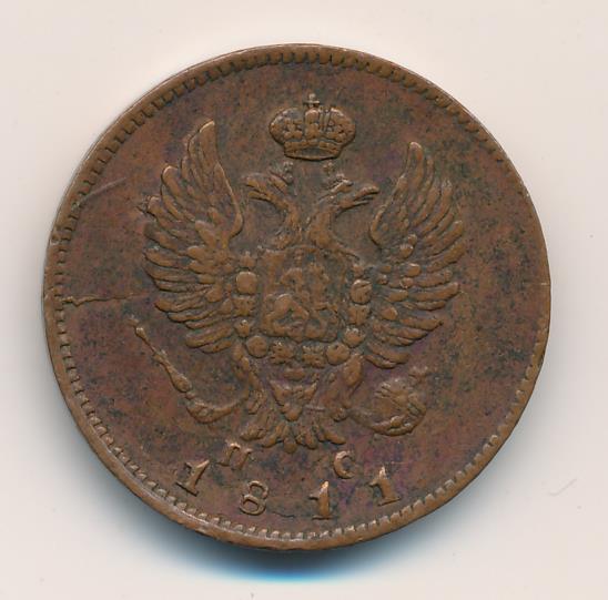 Манифестом от 29 августа 1810 года для медных монет всех номиналов стопа увеличивается в полтора раза и становится 24 рубля из пуда. В следующие два десятилетия по этой норме чеканятся только двухкопеечники, копейки и деньги, призванные ликвидировать нехватку разменной монеты. В оформлении монет вместо кольцевых ободков на оборотной стороне размещается венок из лавровой и дубовой ветвей, как на серебряной монете.