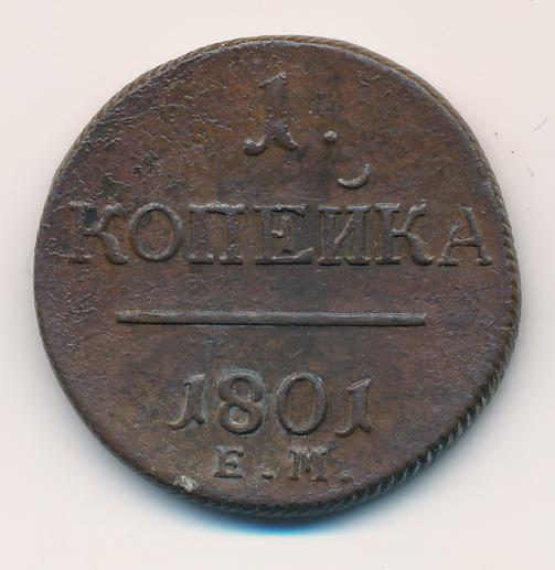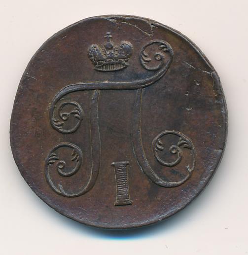 Лицевая сторона — вензель Павла I под короной, оборотная — номинал (1 копейка) и дата. Нормативный вес — 10,24 грамма, гурт — шнур.
