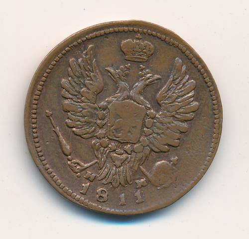 Манифестом от 29 августа 1810 года для медных монет всех номиналов стопа увеличивается в полтора раза и становится 24 рубля из пуда. В следующие два десятилетия по этой норме чеканятся только двухкопеечники, копейки и деньги, призванные ликвидировать нехватку разменной монеты. В оформлении монет вместо кольцевых ободков на оборотной стороне размещается венок из лавровой и дубовой ветвей, как на серебряной монете.