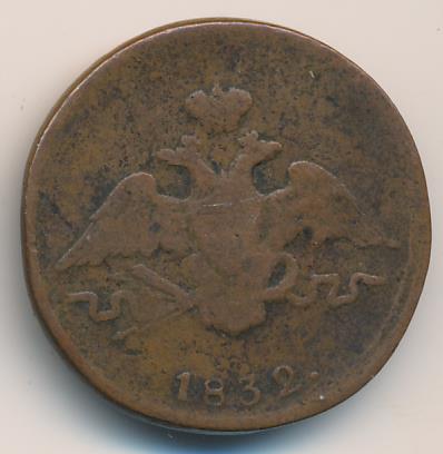 На новой серии медных монет оформление герба как на золотых (с 1817 года) и серебряных (с 1826 года), хотя еще в 1830 году было указано сделать для них орла как на платиновых. Таким образом, вышедшие в 1832 году в обращение новые медные монеты изначально имеют устаревшее оформление, а золотые и серебряные с этого же 1832 года — новое.