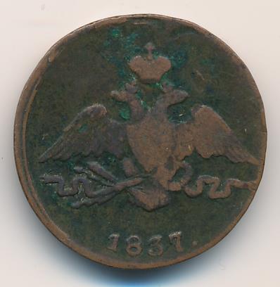 На новой серии медных монет оформление герба как на золотых (с 1817 года) и серебряных (с 1826 года), хотя еще в 1830 году было указано сделать для них орла как на платиновых. Таким образом, вышедшие в 1832 году в обращение новые медные монеты изначально имеют устаревшее оформление, а золотые и серебряные с этого же 1832 года — новое.