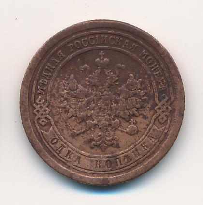 Лицевая сторона — двуглавый орел, надпись МЕДНАЯ РОССIЙСКАЯ МОНЕТА и обозначение номинала (одна копейка); оборотная — обозначение номинала (1 копейка) в бусовом ободке и дата. Нормативный вес — 3,28 грамма, гурт рубчатый.