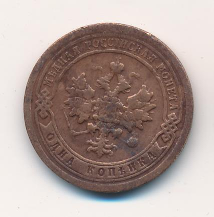 Лицевая сторона — двуглавый орел, надпись МЕДНАЯ РОССIЙСКАЯ МОНЕТА и обозначение номинала (одна копейка); оборотная — обозначение номинала (1 копейка) в бусовом ободке и дата. Нормативный вес — 3,28 грамма, гурт рубчатый.