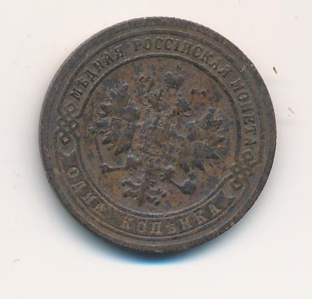 Лицевая сторона — двуглавый орел, надпись МЕДНАЯ РОССIЙСКАЯ МОНЕТА и обозначение номинала (одна копейка); оборотная — обозначение номинала (1 копейка) в бусовом ободке и дата. Нормативный вес — 3,28 грамма, гурт рубчатый.