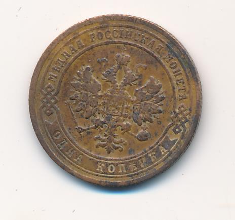 Лицевая сторона — двуглавый орел, надпись МЕДНАЯ РОССIЙСКАЯ МОНЕТА и обозначение номинала (одна копейка); оборотная — обозначение номинала (1 копейка) в бусовом ободке и дата. Нормативный вес — 3,28 грамма, гурт рубчатый.