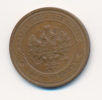 Лицевая сторона — двуглавый орел, надпись МЕДНАЯ РОССIЙСКАЯ МОНЕТА и обозначение номинала (одна копейка); оборотная — обозначение номинала (1 копейка) в бусовом ободке и дата. Нормативный вес — 3,28 грамма, гурт рубчатый.