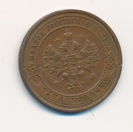 Лицевая сторона — двуглавый орел, надпись МЕДНАЯ РОССIЙСКАЯ МОНЕТА и обозначение номинала (одна копейка); оборотная — обозначение номинала (1 копейка) в бусовом ободке и дата. Нормативный вес — 3,28 грамма, гурт рубчатый.
