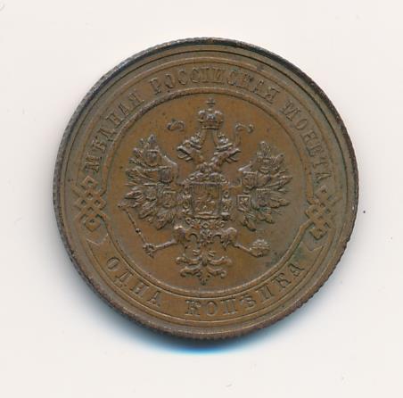 Лицевая сторона — двуглавый орел, надпись МЕДНАЯ РОССIЙСКАЯ МОНЕТА и обозначение номинала (одна копейка); оборотная — обозначение номинала (1 копейка) в бусовом ободке и дата. Нормативный вес — 3,28 грамма, гурт рубчатый.