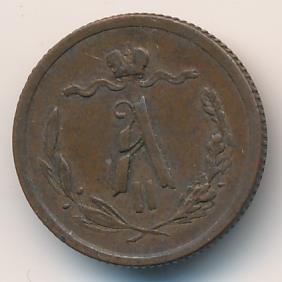 Лицевая сторона — вензель Александра II в венке из лавровой и дубовой ветвей; оборотная — обозначение номинала (1/2 копейки) и дата. Нормативный вес — 1,64 грамма, гурт рубчатый.