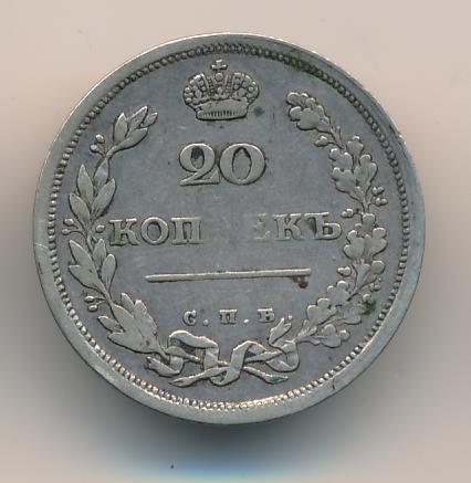 Лицевая сторона - двуглавый орел и дата, оборотная — обозначение номинала (20 копеекъ) в венке из лавровой и дубовой ветвей. Проба до 1813 года — 750, нормативный вес — 4,80 грамма; после 1813 года — проба 868, нормативный вес — 4,15 грамма.