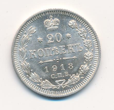 Лицевая сторона — гербовый орел, оборотная —обозначение номинала (20 копеекъ), окруженное венком из лавровой и дубовой ветвей и дата.
