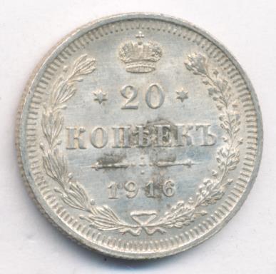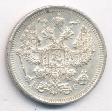 Лицевая сторона — гербовый орел, оборотная —обозначение номинала (20 копеекъ), окруженное венком из лавровой и дубовой ветвей и дата.