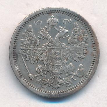 Лицевая сторона — гербовый орел, оборотная —обозначение номинала (15 копеекъ), окруженное венком из лавровой и дубовой ветвей и дата.