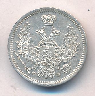 Лицевая сторона — новый гербовый орел с поднятыми крыльями, оборотная —обозначение номинала (10 копеекъ), окруженное венком из лавровой и дубовой ветвей и дата. Проба — 868, нормативный вес — 2,07 грамма.