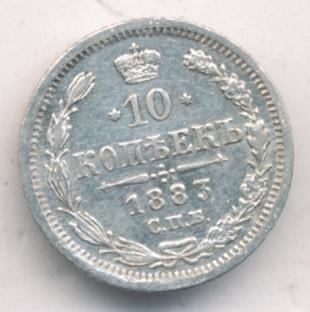 Лицевая сторона — гербовый орел, оборотная —обозначение номинала (10 копеекъ), окруженное венком из лавровой и дубовой ветвей и дата.