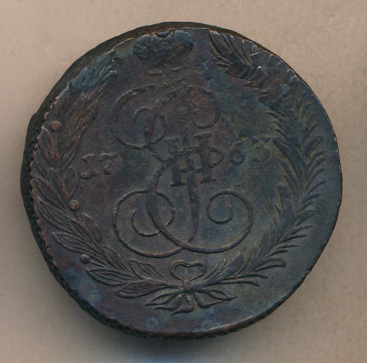 Указом от 27 января 1763 года Екатерина II прекращает перечеканку тяжелых монет 16-рублевой стопы в легкие (32-рублевой стопы) и начинает обратный процесс. Медные монеты приобретают тот же вид, что они имели при Елизавете, меняется лишь вензель императрицы.