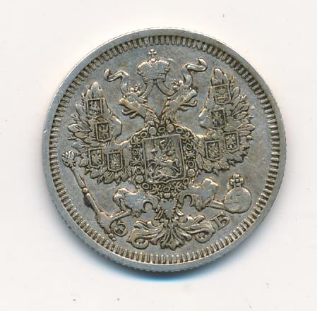 Лицевая сторона — гербовый орел, оборотная —обозначение номинала (20 копеекъ), окруженное венком из лавровой и дубовой ветвей и дата.