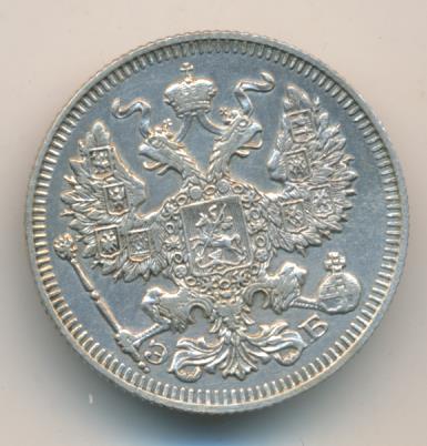 Лицевая сторона — гербовый орел, оборотная —обозначение номинала (20 копеекъ), окруженное венком из лавровой и дубовой ветвей и дата.