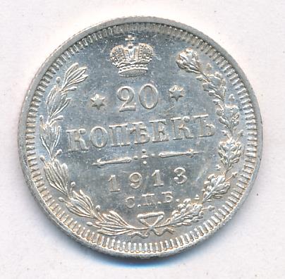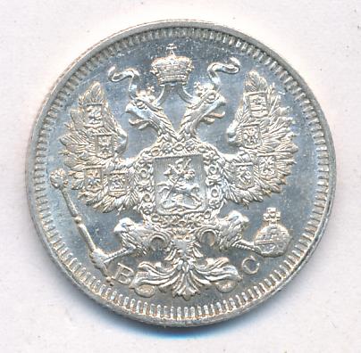 Лицевая сторона — гербовый орел, оборотная —обозначение номинала (20 копеекъ), окруженное венком из лавровой и дубовой ветвей и дата.