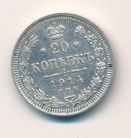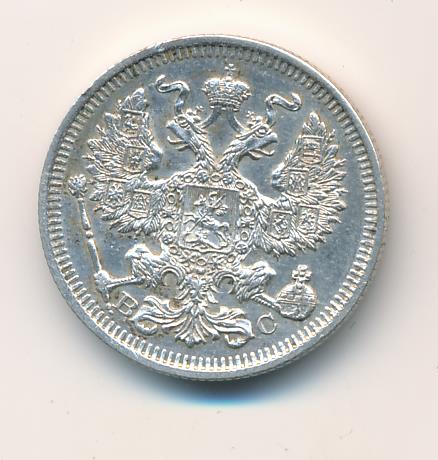 Лицевая сторона — гербовый орел, оборотная —обозначение номинала (20 копеекъ), окруженное венком из лавровой и дубовой ветвей и дата.