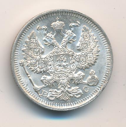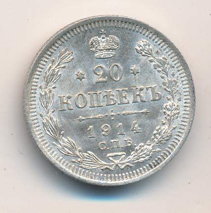 Лицевая сторона — гербовый орел, оборотная —обозначение номинала (20 копеекъ), окруженное венком из лавровой и дубовой ветвей и дата.