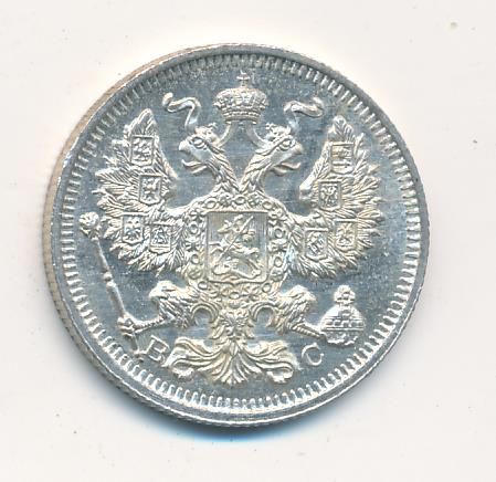 Лицевая сторона — гербовый орел, оборотная —обозначение номинала (20 копеекъ), окруженное венком из лавровой и дубовой ветвей и дата.