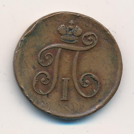 Лицевая сторона — вензель Павла I под короной, оборотная — номинал (1 деньга) и дата. Нормативный вес — 5,12 грамма, гурт — шнур.