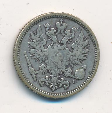 Лицевая сторона — российский двуглавый орел с гербом Великого княжества Финляндского на груди, оборотная — номинал и дата в венке из дубовых листьев. Проба — 750, нормативный вес — 2,55 грамма, гурт рубчатый.