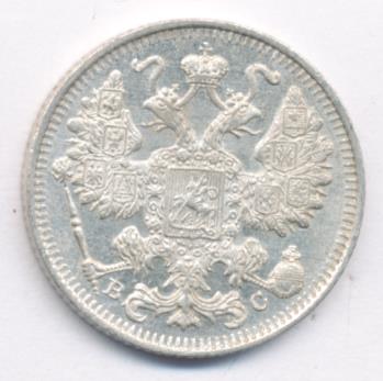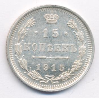 Лицевая сторона — гербовый орел, оборотная —обозначение номинала (15 копеекъ), окруженное венком из лавровой и дубовой ветвей и дата.