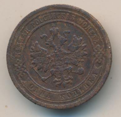 Лицевая сторона — двуглавый орел, надпись МЕДНАЯ РОССIЙСКАЯ МОНЕТА и обозначение номинала (одна копейка); оборотная — обозначение номинала (1 копейка) в бусовом ободке и дата. Нормативный вес — 3,28 грамма, гурт рубчатый.