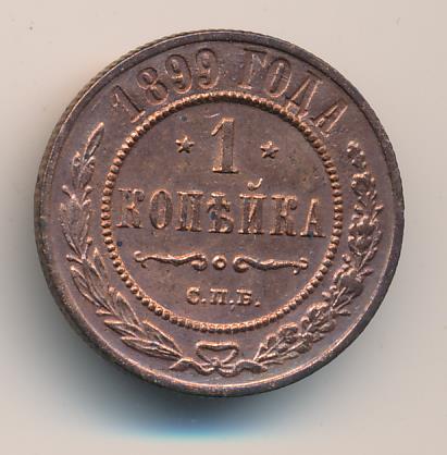 Лицевая сторона — двуглавый орел, надпись МЕДНАЯ РОССIЙСКАЯ МОНЕТА и обозначение номинала (одна копейка); оборотная — обозначение номинала (1 копейка) в бусовом ободке и дата. Нормативный вес — 3,28 грамма, гурт рубчатый.