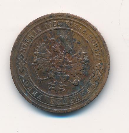 Лицевая сторона — двуглавый орел, надпись МЕДНАЯ РОССIЙСКАЯ МОНЕТА и обозначение номинала (одна копейка); оборотная — обозначение номинала (1 копейка) в бусовом ободке и дата. Нормативный вес — 3,28 грамма, гурт рубчатый.