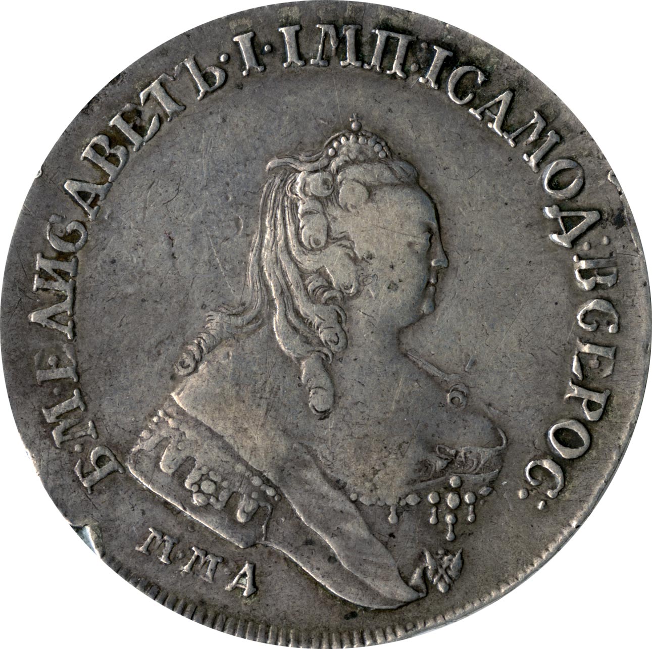 Красный двор в Москве начинает тиснение монет с портретом Елизаветы в 1742 году. Портрет на московских монетах существенно отличается от петербургских типов. Правое плечо не прикрыто плащом, под бюстом знак ордена Св. Андрея (в 1754 году орденская лента становится уже).