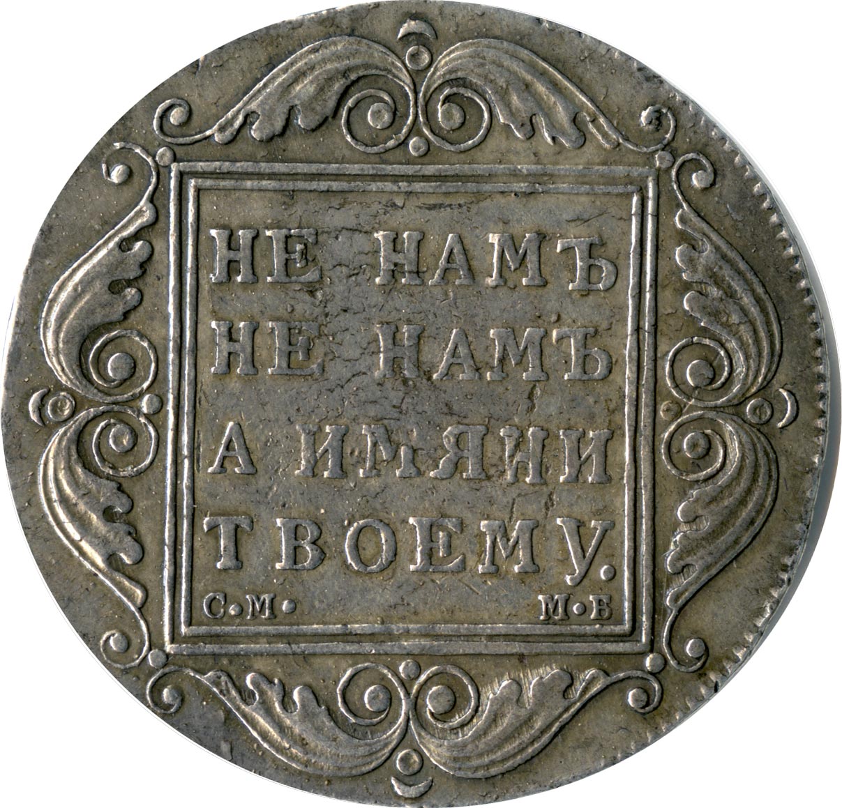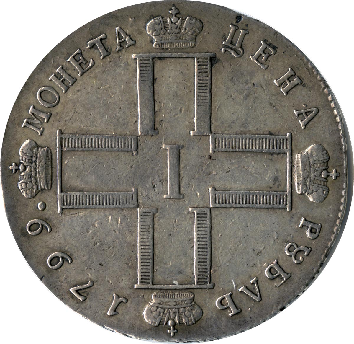 Лицевая сторона - крестообразная монограмма из четырех П и I в центре, надпись «МОНЕТА ЦЕНА РУБЛЬ» и дата, оборотная - надпись «НЕ НАМ, НЕ НАМ, А ИМЯНИ ТВОЕМУ» в картуше. Проба — 868, нормативный вес — 20,73 грамма, гурт — надпись «восемдесятъ третеи съ одною третью пробы».