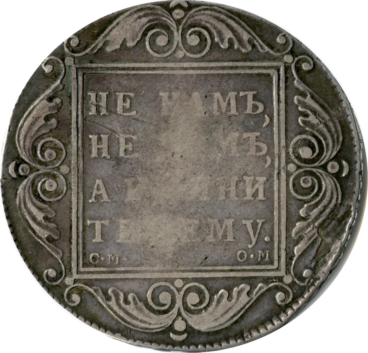 Лицевая сторона - крестообразная монограмма из четырех П и I в центре, надпись «МОНЕТА ЦЕНА РУБЛЬ» и дата, оборотная - надпись «НЕ НАМ, НЕ НАМ, А ИМЯНИ ТВОЕМУ» в картуше. Проба — 868, нормативный вес — 20,73 грамма, гурт — надпись «восемдесятъ третеи съ одною третью пробы».