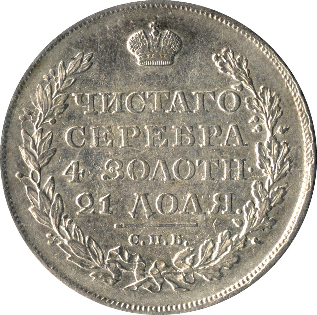 Выделяют три типа орла. Лицевая сторона - двуглавый орел, дата и надпись «МОНЕТА РУБЛЬ», оборотная — окруженная венком из лавровой и дубовой ветвей надпись «ЧИСТАГО СЕРЕБРА 4 ЗОЛОТН 21 ДОЛЯ». Проба — 868, нормативный вес — 20,73 грамма.