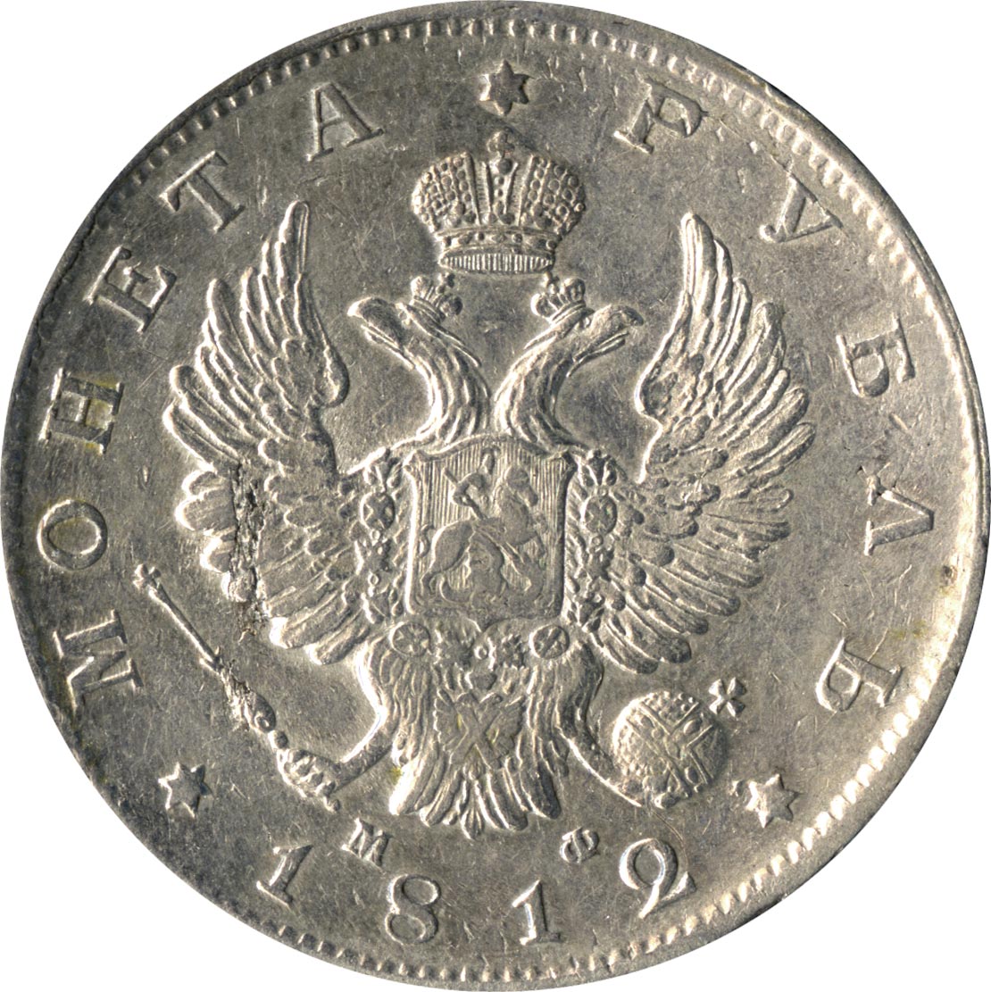 Манифест от 20 июня 1810 года «О новом устройстве монетной системы» устанавливает серебряный рубль законной мерой всех расчетов. Банковые монеты — рубли и полтины — изменяют свой внешний вид. Броская надпись внутри венка на оборотной стороне указывает содержание чистого серебра в монете, а номинал занимает скромное место вокруг орла. Гуртовая надпись сообщает о пробе и лигатурном весе.