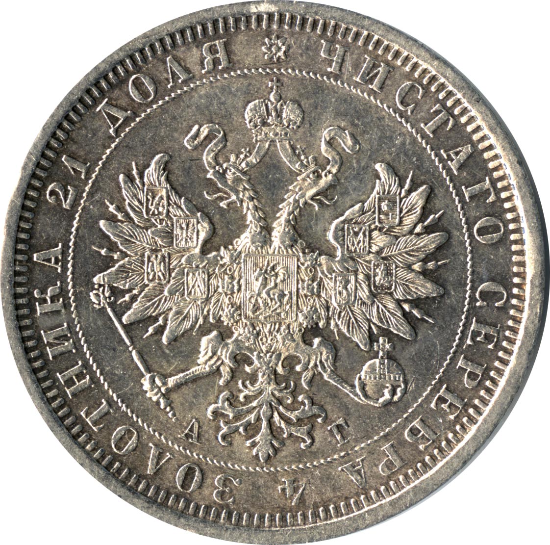 Лицевая сторона — гербовый орел и надпись «ЧИСТОГО СЕРЕБРА 4 ЗОЛОТНИКА 21 ДОЛЯ», оборотная — обозначение номинала «РУБЛЬ», окруженное венком из лавровой и дубовой ветвей и дата.